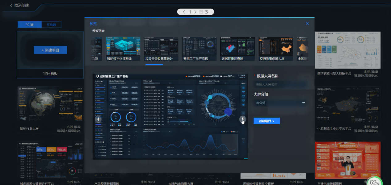 多種可視化數(shù)據(jù)類型實現(xiàn)可編輯模塊化設(shè)計,所見即所得,無需編程能力,只需拖拽便可生成專業(yè)的可視化頁面。布局完成后,即可一鍵保存并推送至大屏發(fā)布展示。