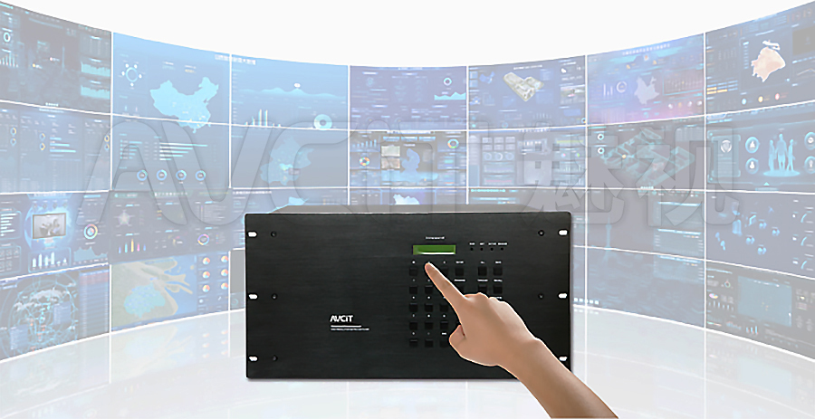 最初人與視音頻設(shè)備交互的方式主要為按鍵控制,設(shè)備一般具有各種不同的功能按鍵。以“信號切換”為例,要實(shí)現(xiàn)矩陣切換信號功能時(shí),按照一定邏輯順序觸發(fā)對應(yīng)按鍵即可。除切換之外,還具備簡單模式保存/調(diào)用、狀態(tài)查詢等功能性按鍵供用戶使用。部分設(shè)備還具有一塊LED顯示屏,供使用者簡單讀取設(shè)備相關(guān)狀態(tài)。