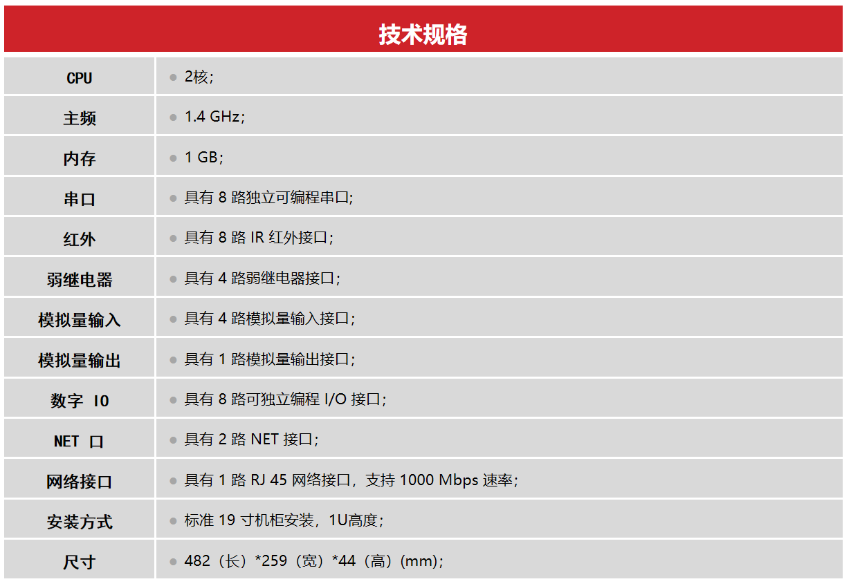 接收觸摸屏的控制指令,通過中央控制系統(tǒng)以發(fā)送串口指令的方式控制投影機、展示臺、影碟機、錄像機、電視,攝像機,音頻處理器、電動屏幕、電動窗簾、燈光等設(shè)備,串口支持紅外,UDP控制。