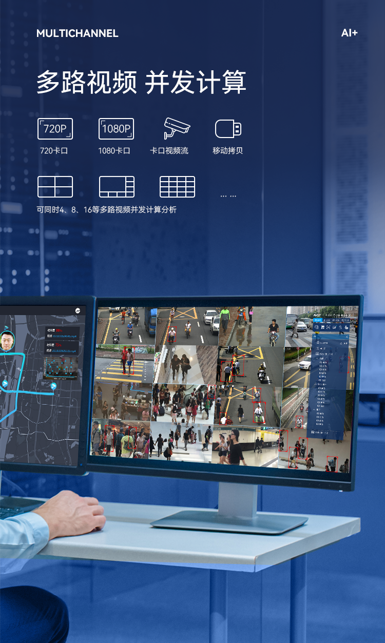 可對(duì)常規(guī)的720P、1080P等規(guī)格的高清卡口視頻流、移動(dòng)拷貝視頻流自動(dòng)實(shí)時(shí)分析,并通過深度識(shí)別、目標(biāo)檢測(cè)、軌跡跟蹤等專業(yè)算法智能分析。 可同時(shí)4、8、16等多路視頻并發(fā)計(jì)算分析。