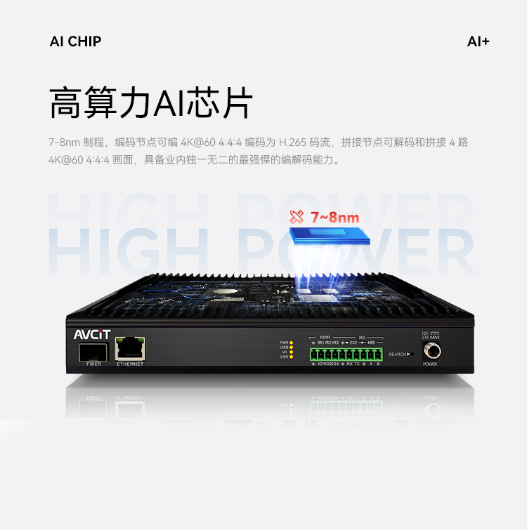 7-8nm制程,編碼節(jié)點(diǎn)可編4K60 4:4:4編碼為H.265碼流,拼接節(jié)點(diǎn)可解碼和拼接4路4K60 4:4:4畫面,具備業(yè)內(nèi)獨(dú)一無二的最強(qiáng)悍的編解碼能力。