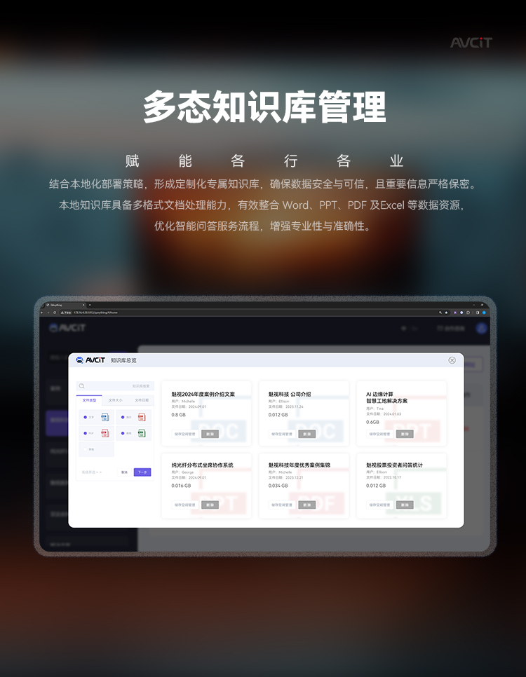 本地知識庫具備多格式文檔處理能力,有效整合 Word、PPT、PDF 及Excel 等數(shù)據(jù)資源,優(yōu)化智能問答服務流程,增強專業(yè)性與準確性。