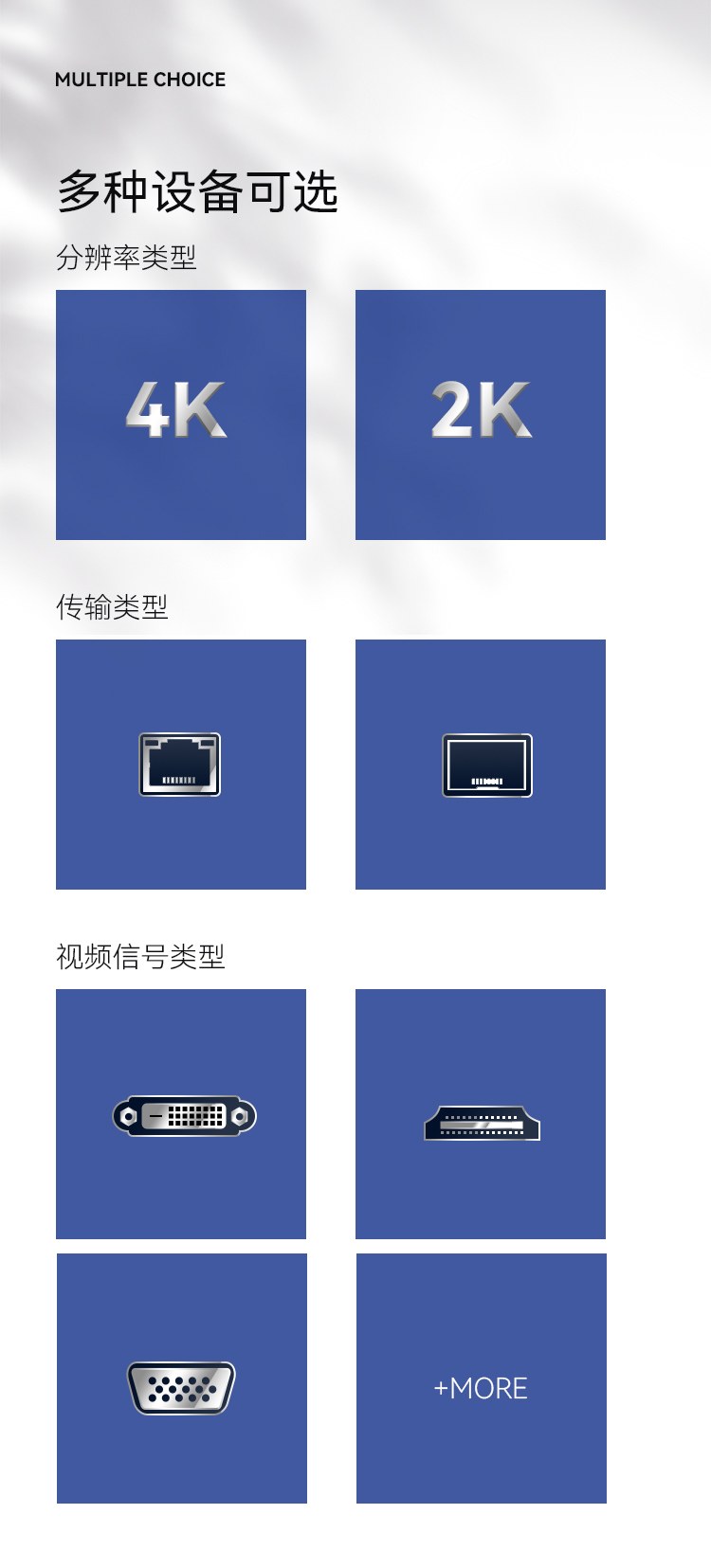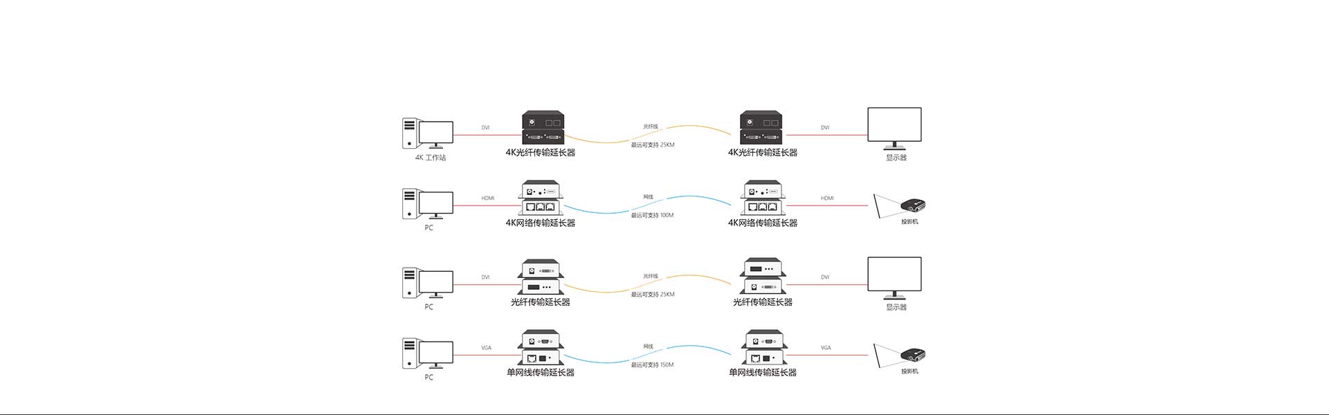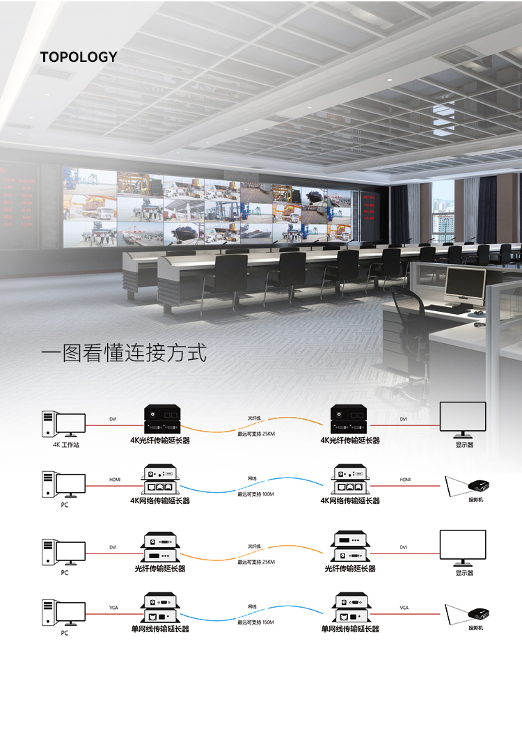 分辨率:4K、2K;傳輸:光傳、網傳、視頻信號:HDMI、DVI、VGA