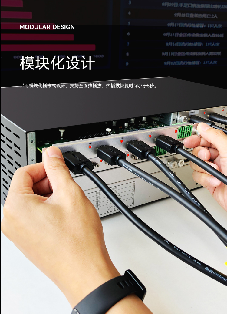 采用模塊化插卡式設(shè)計,支持全面熱插拔,熱插拔恢復(fù)時間小于5秒。