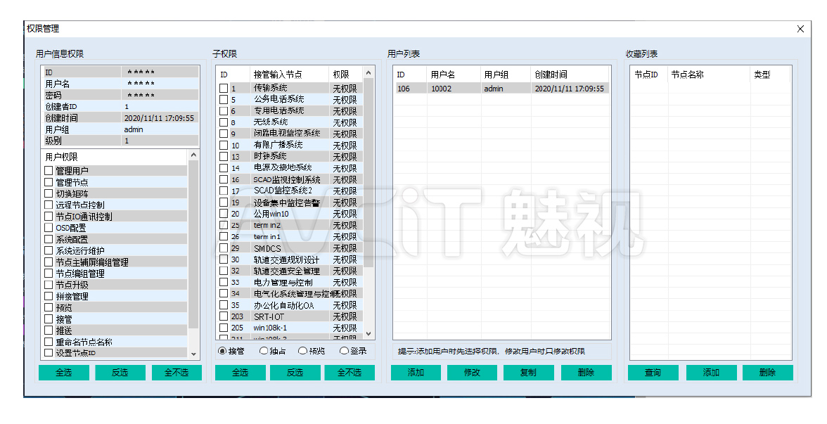 在指揮、調(diào)度、控制中心等應用場景中,各專業(yè)坐席只能控制本專業(yè)工作站,如各專業(yè)坐席位置調(diào)整,可通過Phinx系統(tǒng)權(quán)限設置在不調(diào)整硬件的情況下,分配對應的訪問權(quán)限到對應的坐席崗位。分級權(quán)限可以按需要進行配置。 |