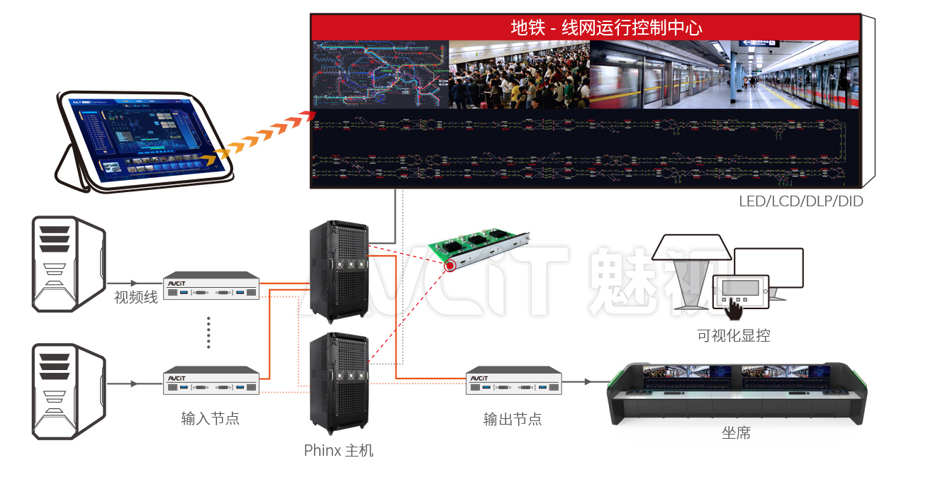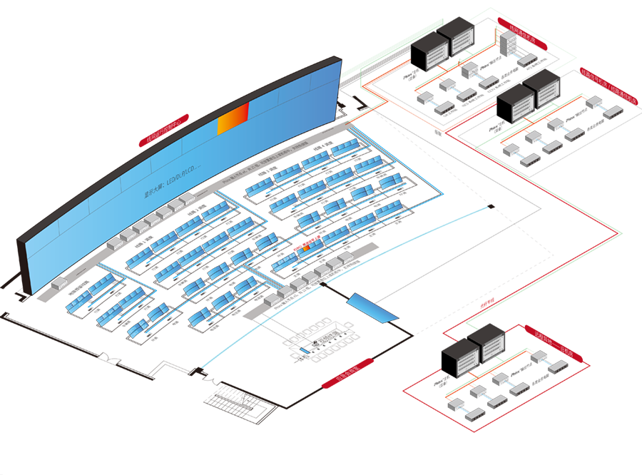 Phinx系統(tǒng)無需額外配置拼接器即可實現(xiàn) DLP、LED、液晶屏等的拼接功能,支持任意分辨率大屏幕的拼接。既減少了設備數(shù)量,也降低了信號轉(zhuǎn)換次數(shù),從而增加了系統(tǒng)穩(wěn)定性。系統(tǒng)拼接控制軟件支持 window 系統(tǒng)、B/S 架構(gòu)或者 iPAD 設備等,所有信號以及大屏均支持回顯,可實現(xiàn)可視化投屏和可視化監(jiān)視。相比其他廠商單獨配置拼接器的方案,本方案僅需在Phinx主備主機插入拼接卡,和全冗余形成一個整體,即可實現(xiàn)不僅坐席全冗余高可靠,拼接系統(tǒng)同樣可實現(xiàn)全冗余高可靠雙備份;同時在必要時,席位還可直接推送信號至大屏幕。 |